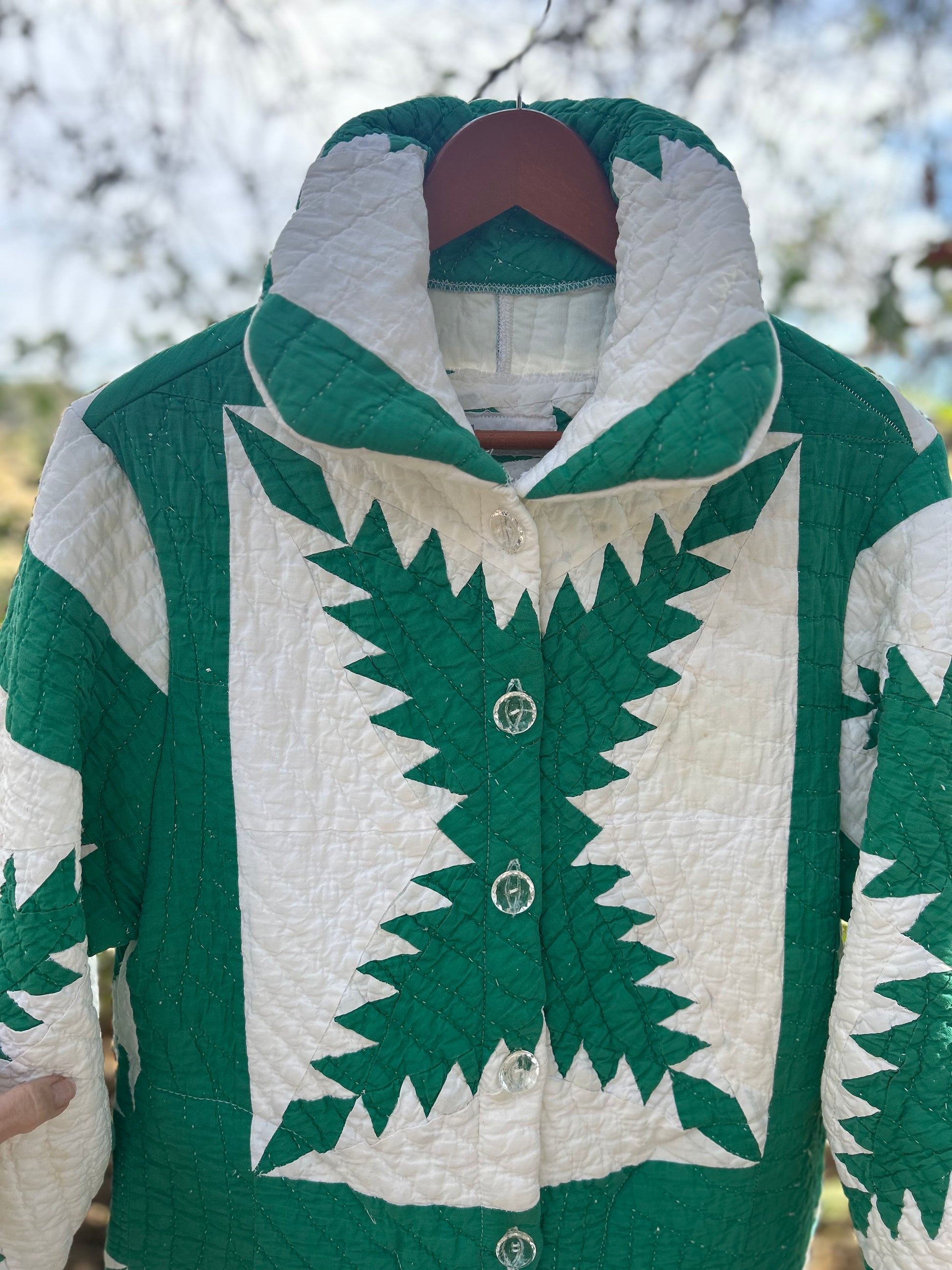 This coat was created with a one of a kind hand stitched antique “pineapple quilt”